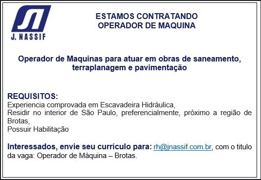 Tempo de Experiência: Experiência comprovada em Escavadeira Hidráulica